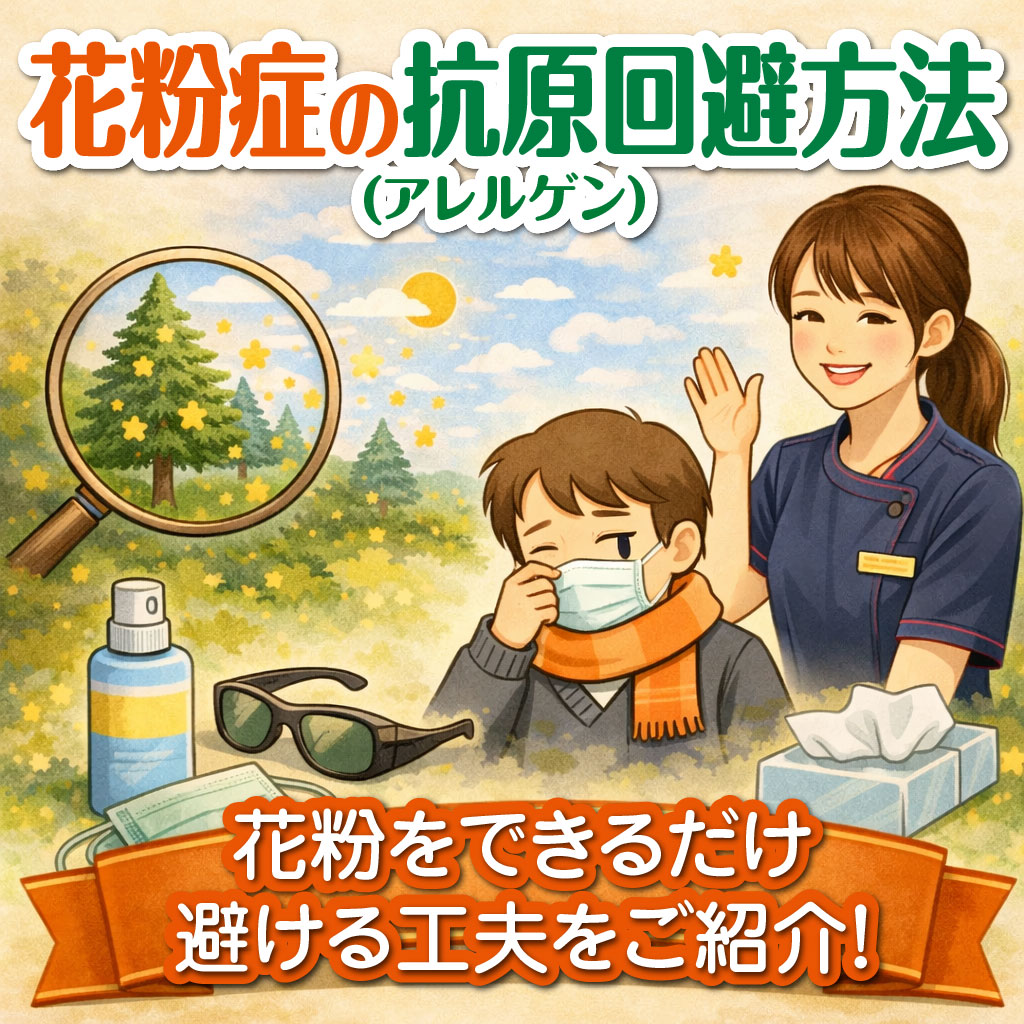 抗原回避とは、できるだけ花粉と接触する機会を減らすことをいいます。